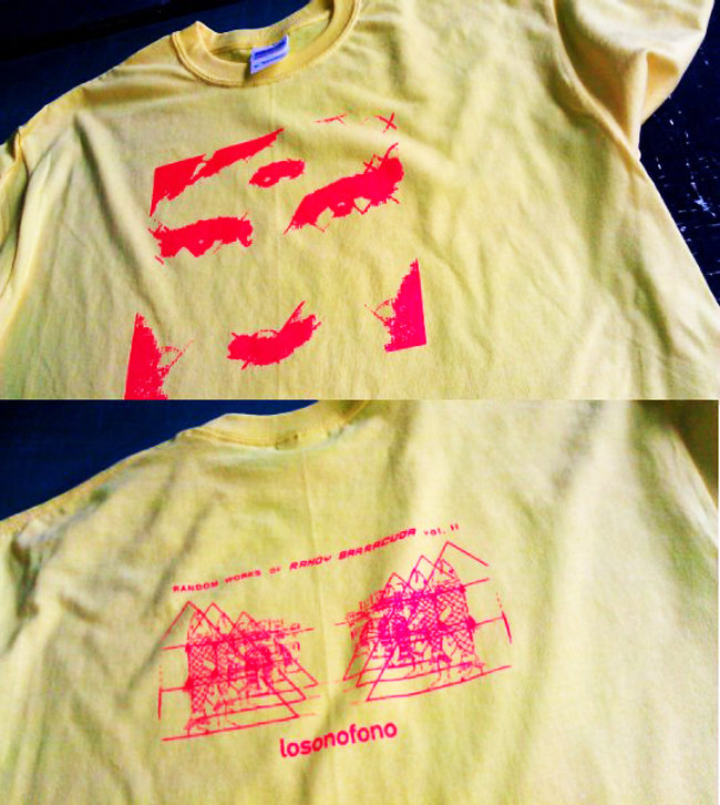 Just as above, only true to the album colors, on a Yellow Shirt with Red print on the front and back.